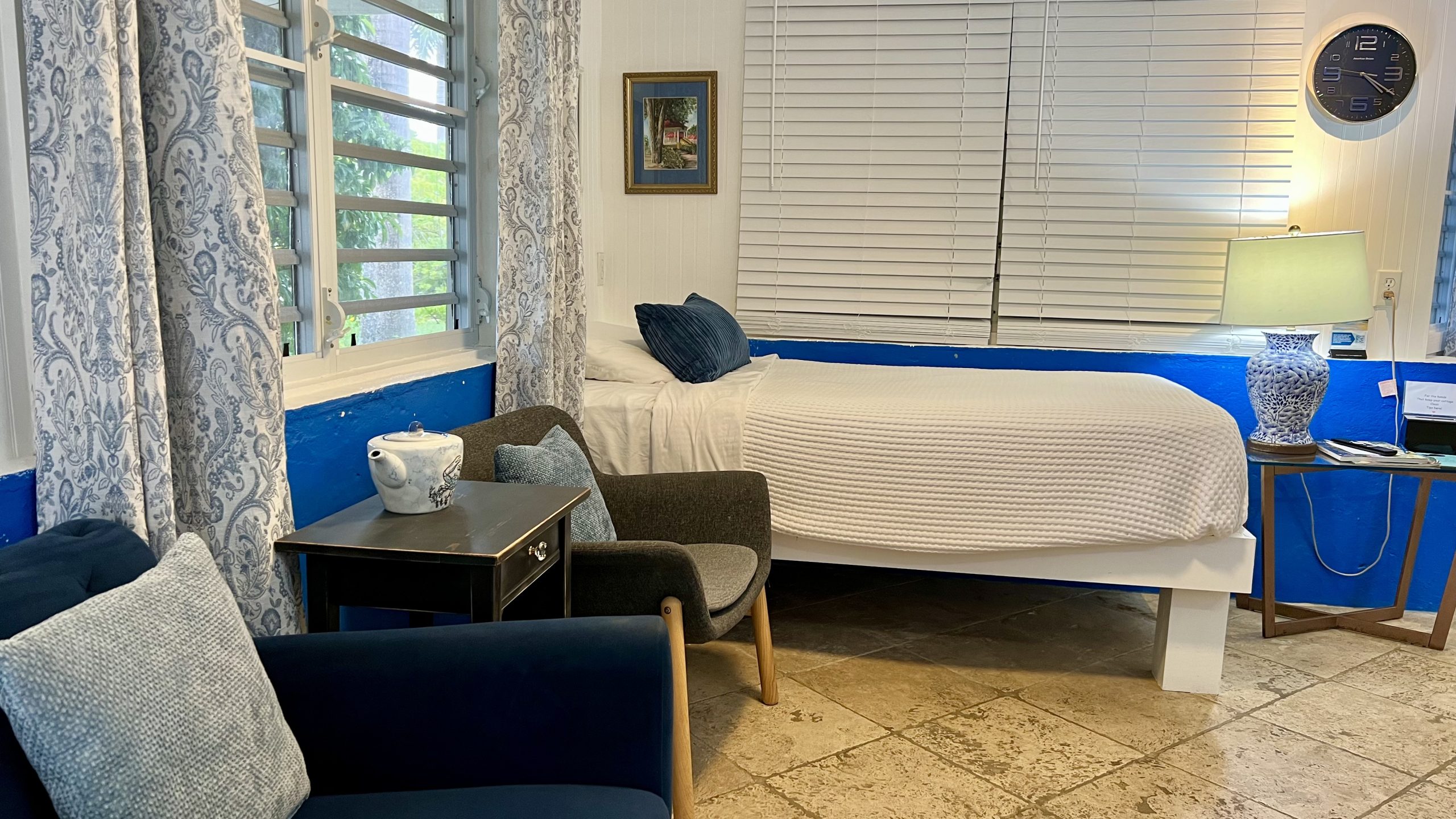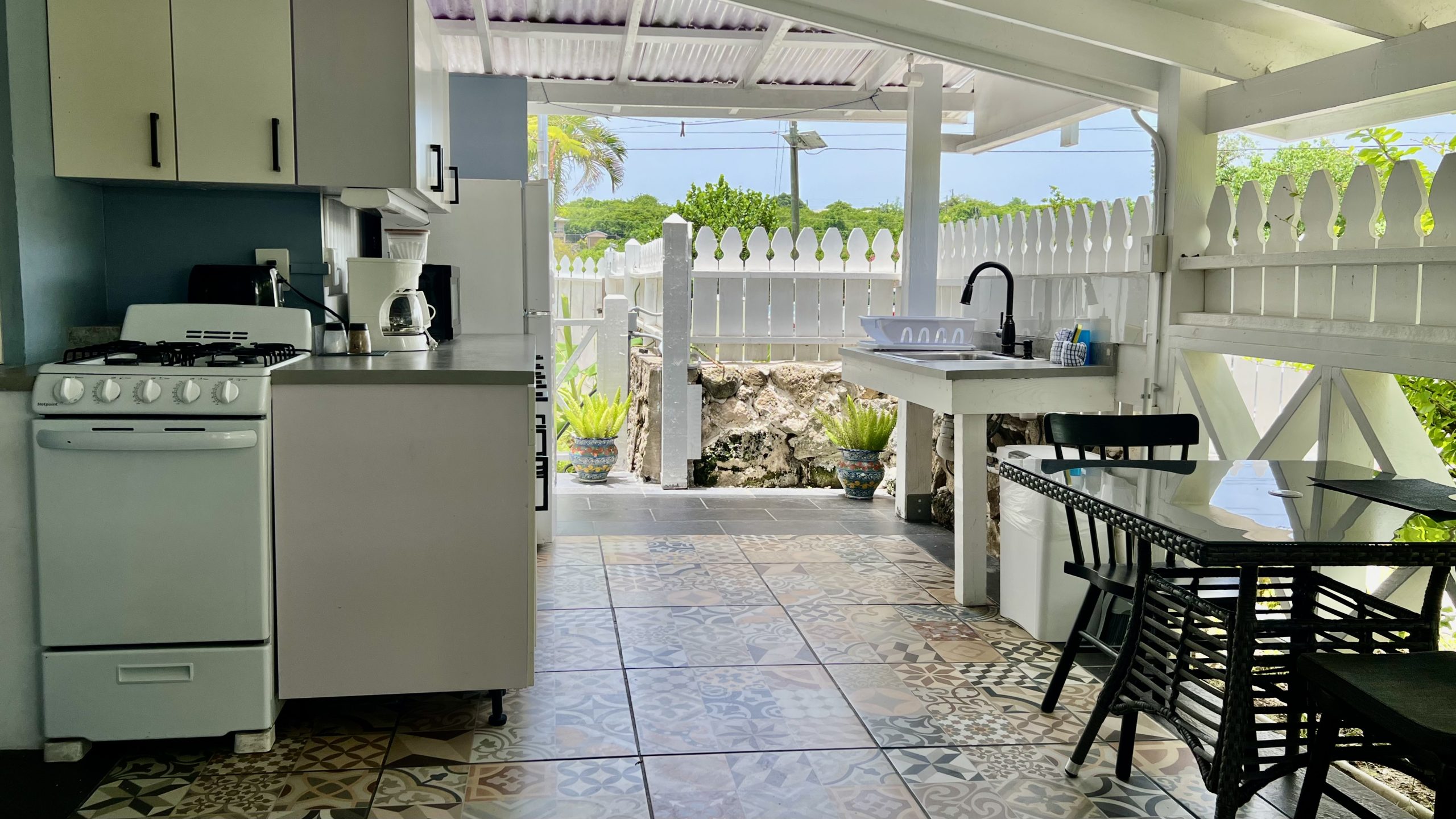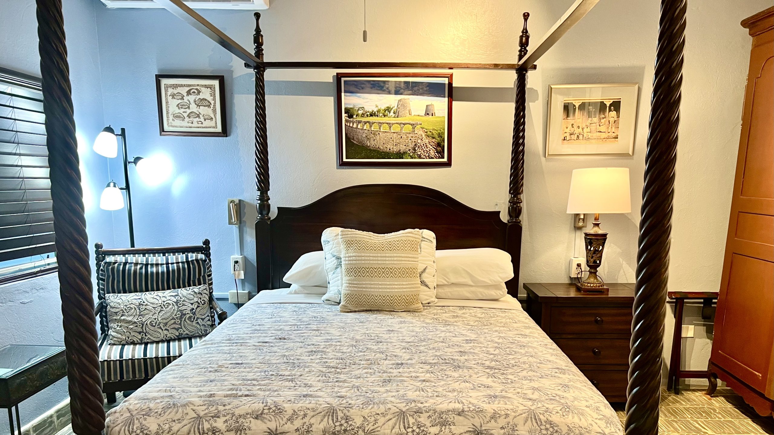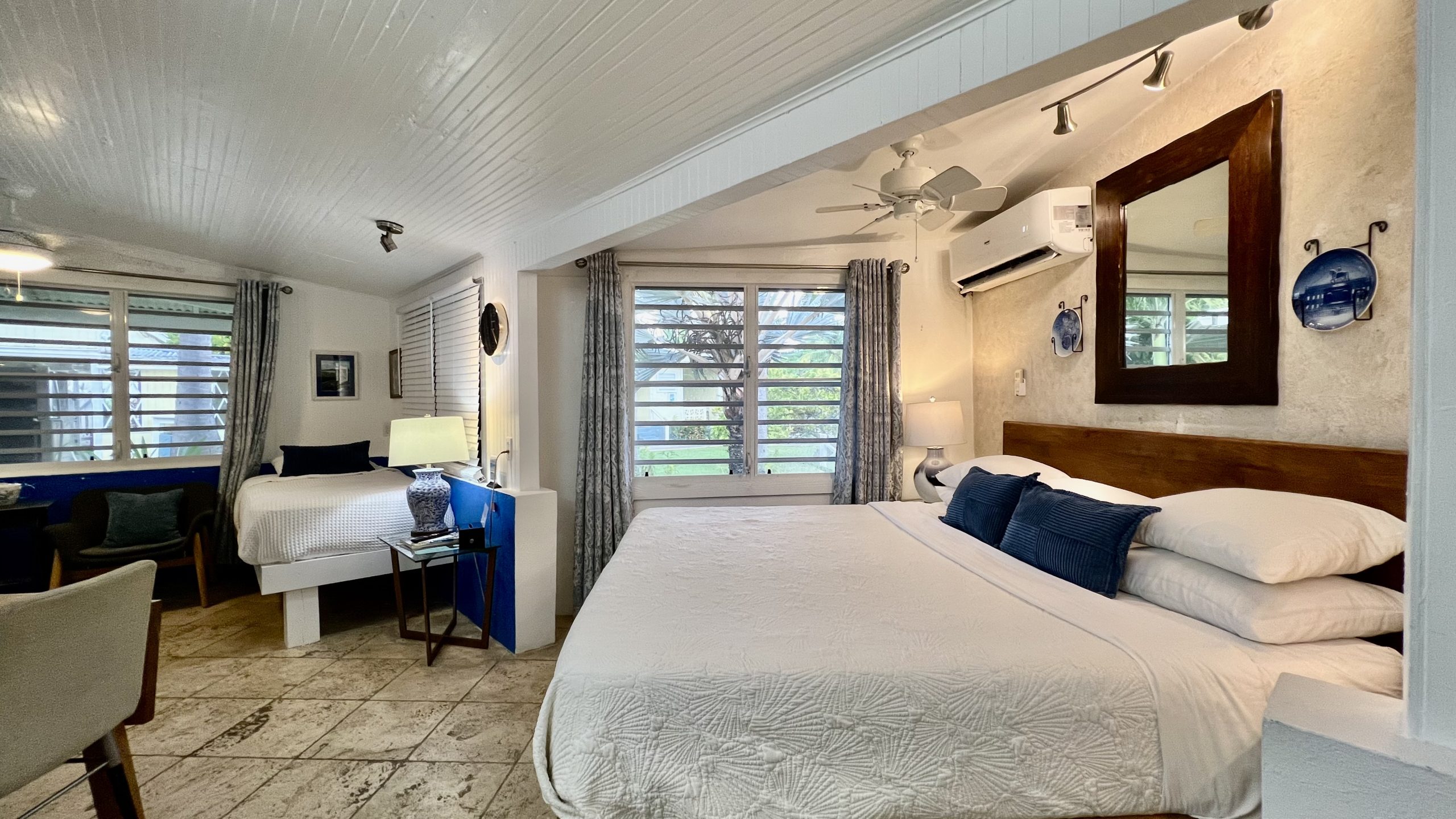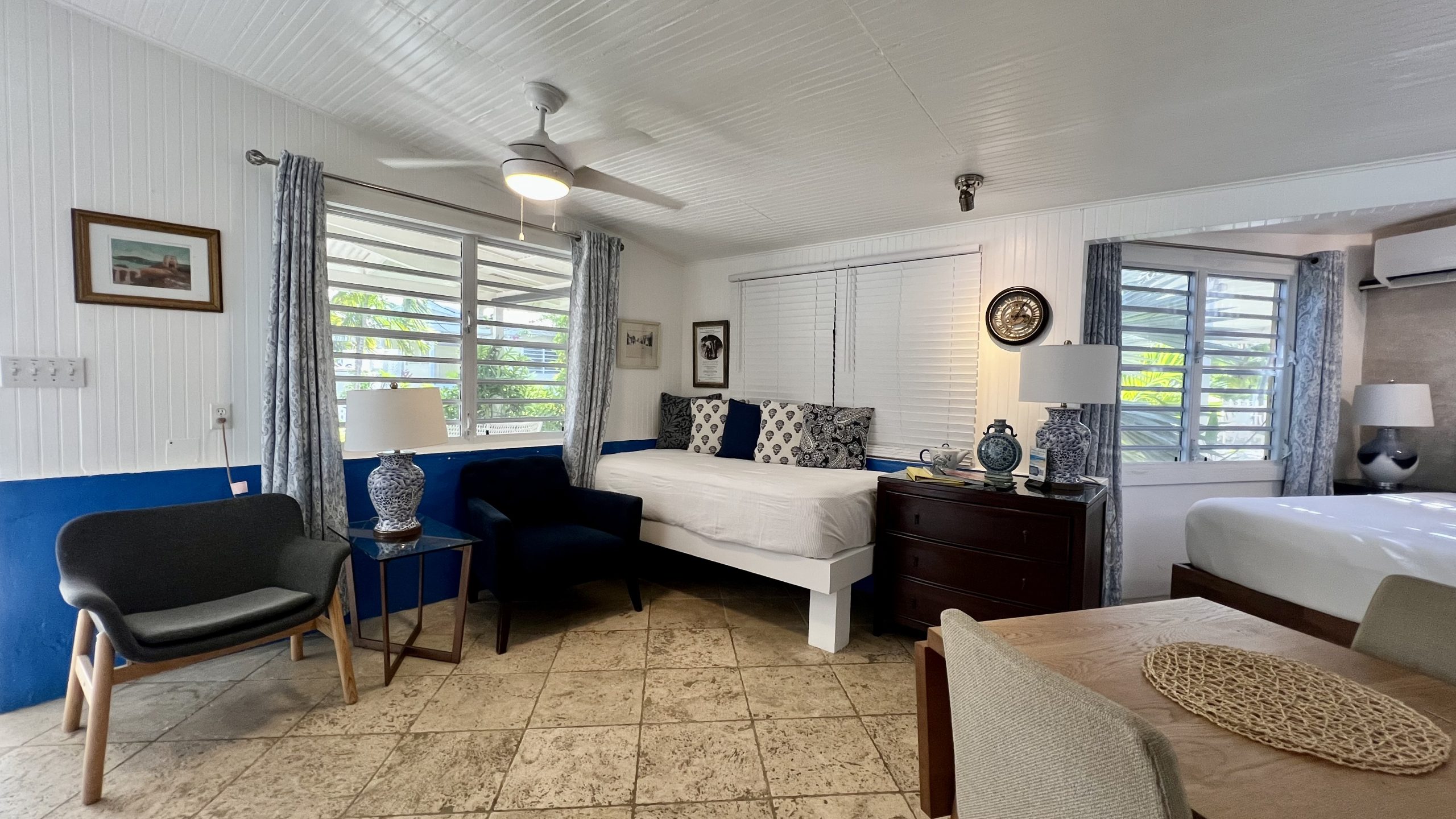 Crew Cottage is a cozy, charming “antique” cottage that makes you feel as if you have been transported to the West Indies of the past. This cottage is located on the south side of our property, beside our Commodore’s Villa. This charming space features a queen bed and a twin bed. Step outside to a spacious private patio, perfect for soaking in the Caribbean breeze. For a true island experience, enjoy the convenience of an outdoor kitchen and refreshing outdoor shower—just steps from your door.