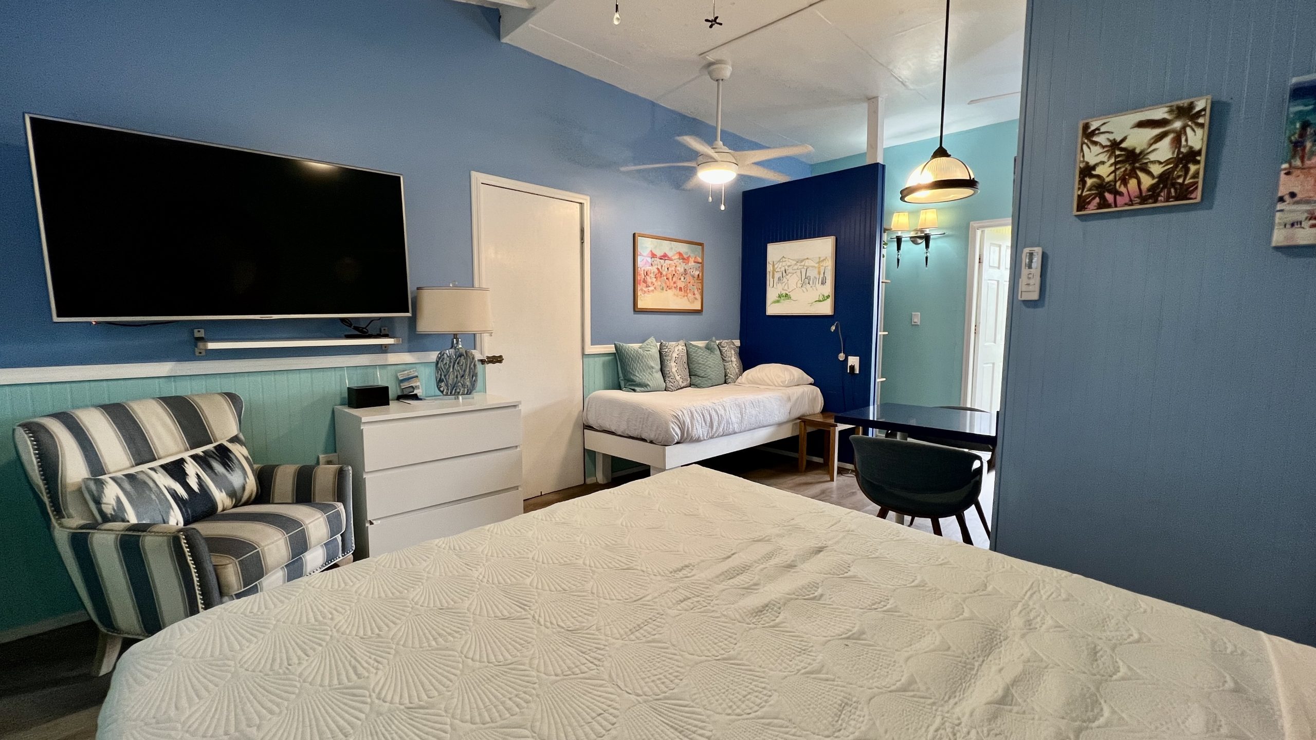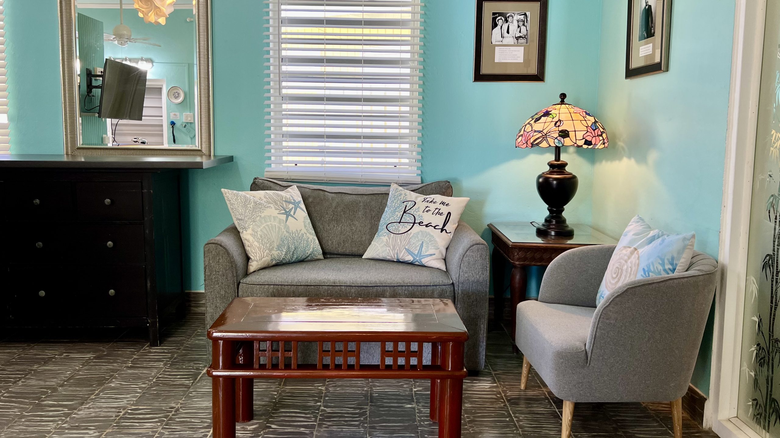 Commodore’s Villa is named in honor of our great-uncle, John Shultz—a career Naval officer and Pearl Harbor survivor. This spacious one-bedroom, two bathroom villa is located near the south parking lot, offering easy access and a peaceful setting.